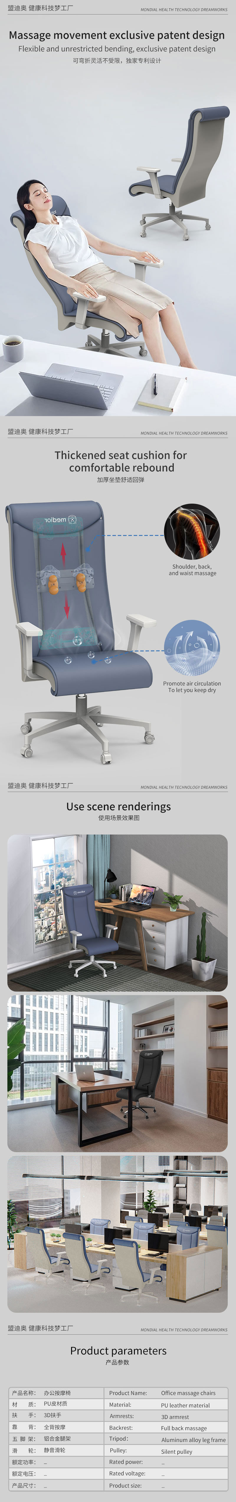 頸部揉捏按摩功能并能順時針和逆時針兩個方向旋轉(zhuǎn)頸部上下高度可調(diào),以適應(yīng)不同使用者的身高。