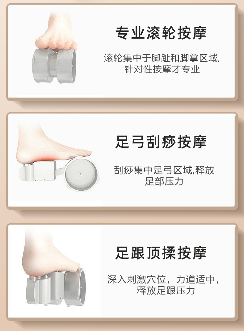 腳底 滾輪按壓(腳趾)、拖(腳底)、頂(腳后跟)按摩 (多模式,多強(qiáng)度)